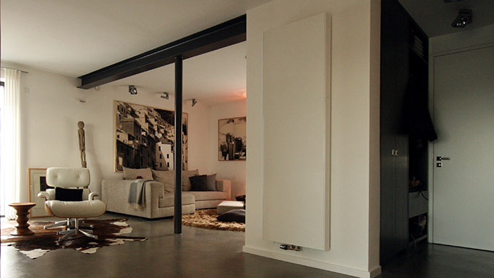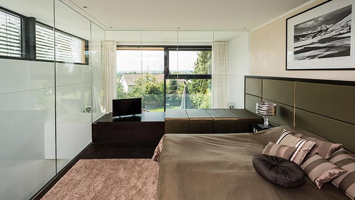 Ein split-level-Wohnhaus mit Satteldach aus den 1960´er Jahren wurde umgebaut und um ein Staffelgeschoss zu erweitert. Das Gebäude wurde vollständig entkernt und das Satteldach abgebaut.