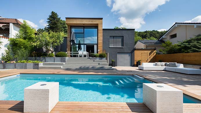 Entsprechend der Geradlinigkeit der Architektur wurde auch der Garten von Grund auf neu gestaltet.