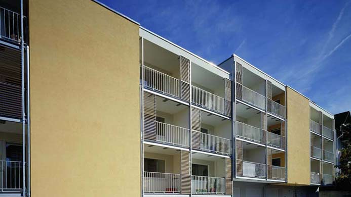 Die Außenwände wurden mit einem Fassaden – Vollwärmeschutz versehen, neu verputzt und farblich angelegt. Durch die durchgeführte Maßnahmen wurde die Westfassade wohltuend gegliedert und gestalterisch aufgewertet.